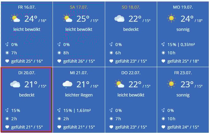 Solange es geht (Delta droht!), könnt ihr ja selbst jeweils vorm ersten Dienstag schon mal gucken, ob wie das Wetter aussieht. Dann kommt die gezwungenermaßen recht kurzfristige Einladung nicht so arg überraschend. Und: sollen wir bei gutem Wetter vielleicht in 14 Tagen einen weiteren Versuch starten? Der Sommer ist ja in der letzten Zeit immer sehr kurz gewesen ....